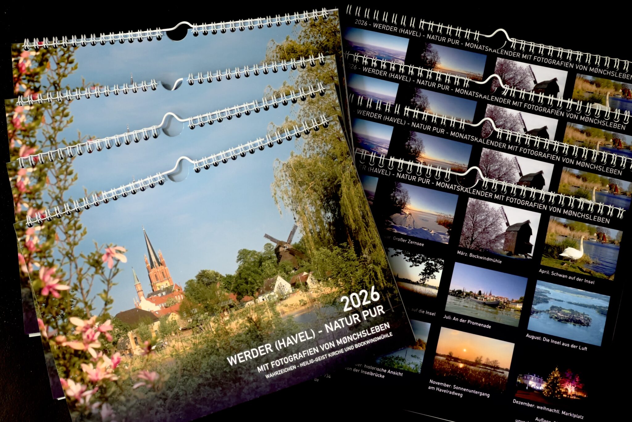 Ein besonderes Highlight ist unser jährlich erscheinender Monatskalender über Werder (Havel), der mit stimmungsvollen Bildern die Schönheit der Region zeigt – perfekt als Geschenk oder dekorativer Blickfang für Zuhause oder Büro.